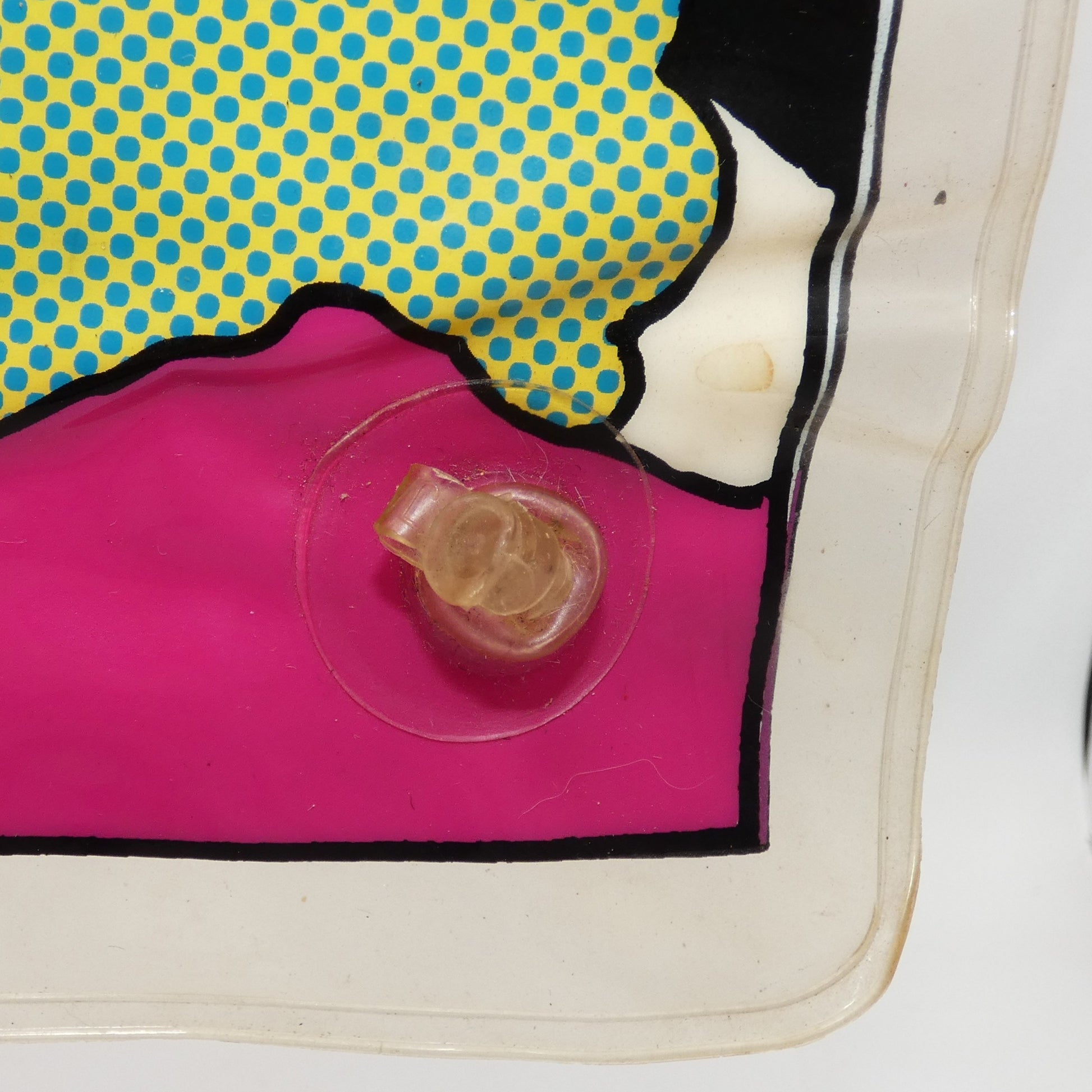 Offering an original vintage 1968 Peter Max blow-up pillow made of heavy vinyl. A psychedelic image of faces. Very colorful pop art graphics are on both sides of otherwise clear vinyl. PETER MAX logo at bottom. Measures 16 x 16 inches. Holds air.